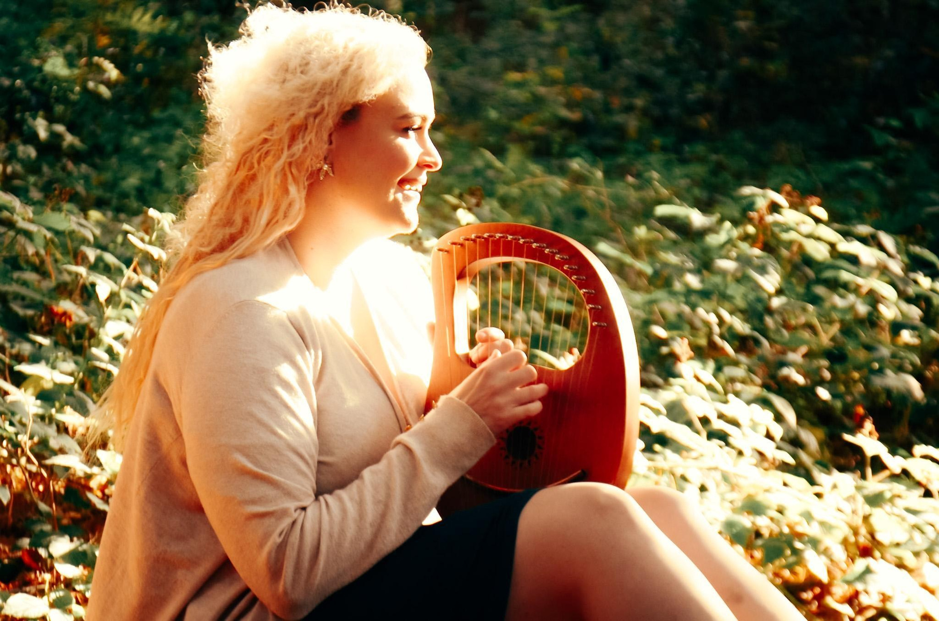 - a musician in the woods with their instrument